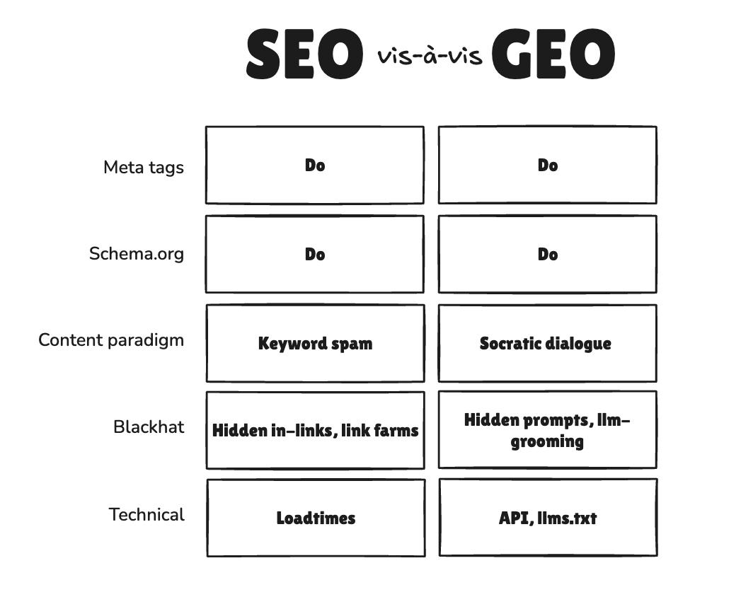 Nice! A good clean approach that benefits both llms and Google, I like it. But say I had a friend who liked the dark arts of geo, what advice would you give him? Anything besides llm-grooming?